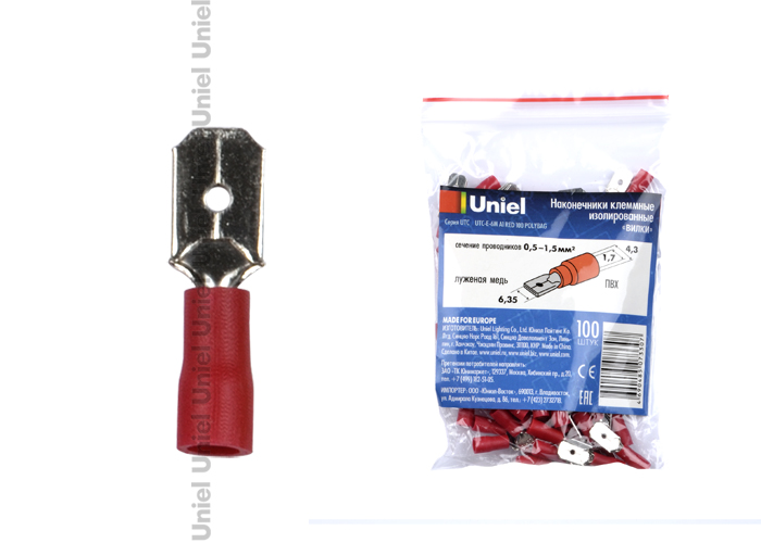Купить UTC-E-6M A1 RED 100 POLYBAG Наконечник клеммный изолированный тип E «вилка». Ширина контактной части 66 руб./шт Артикул 10155 Код 00288500 Бренд UNIEL Остатки шт − + В корзину